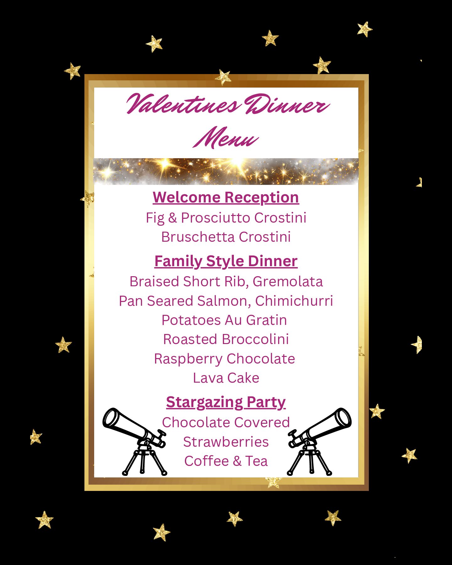 Valentines Stargazing Party Dinner Menu